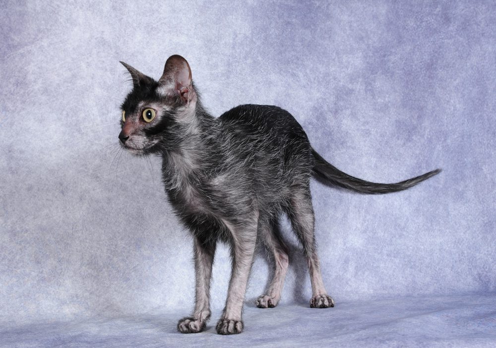 The cat is not hairless, but it barely sheds any hair. Their coat is often associated with a werewolf’s.