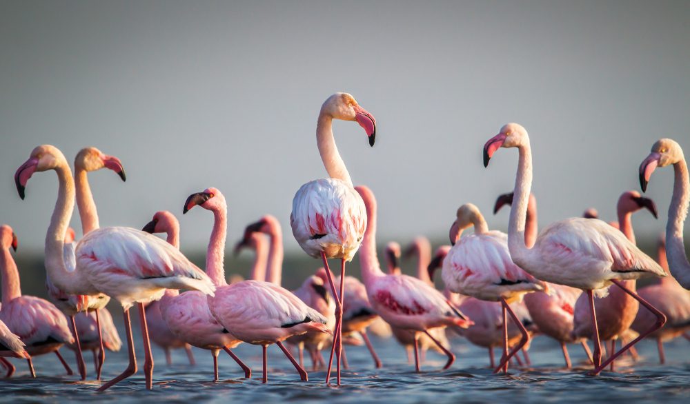 A flock of beautiful and elegant pink birds is what scientists refer to as a “flamboyance of flamingos”. This is a striking and fitting name, if you ask us. Based on this example, it appears that the author enjoyed poetry and the use of alliteration.