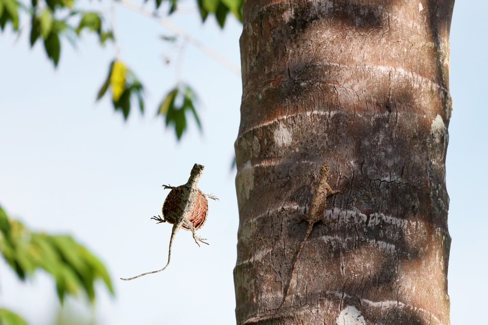 Draco is a genus of agamid lizards that are also known as flying lizards. They are related to iguanas. These cute lizards can literally fly, because they use their ribs and membrane to create wings. Draco lizards can glide more than 50 meters. They can be found in the forests and teak plantations of South Asia.