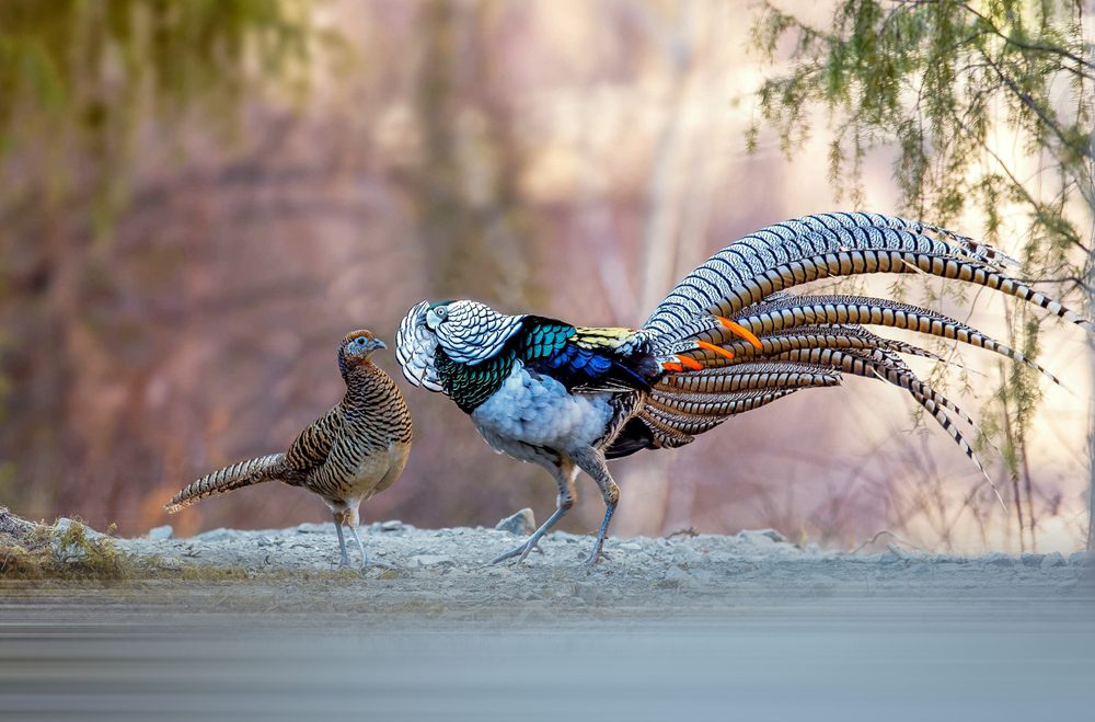 As you can see in this picture, the female (left) and male (right) Lady Amherst’s pheasants are some of the most beautiful birds in the world. The Lady Amherst’s pheasant male has a gorgeous plumage which makes them truly special in the world of birds.