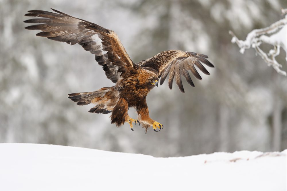 Golden eagles have powerful feet and sharp claws that allow them to rapidly come down and catch their prey. You probably saw the videos circulating the internet, where golden eagles were captured when catching goats from the cliffs and then intentionally dropping them into the rocks in order to kill them. After the goat is dead, the eagle will feed on it.