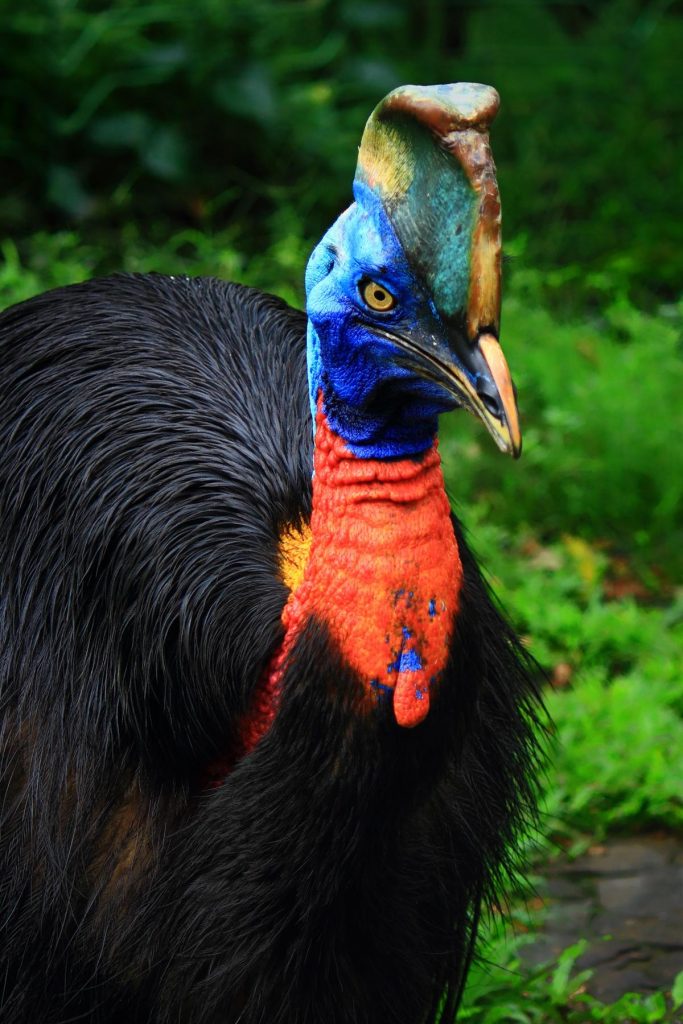 The Cassowary has very powerful legs with dagger-like claws that look like spikes that grow up to 18cm in length. It attacks by jumping up in the air and kicking forward with its legs. Its lighting fast kick, with dagger sharp claws, is powerful enough to severely injure or even kill its victim. Once provoked it will keep up its attack chasing its victims at speeds up to 50kph.