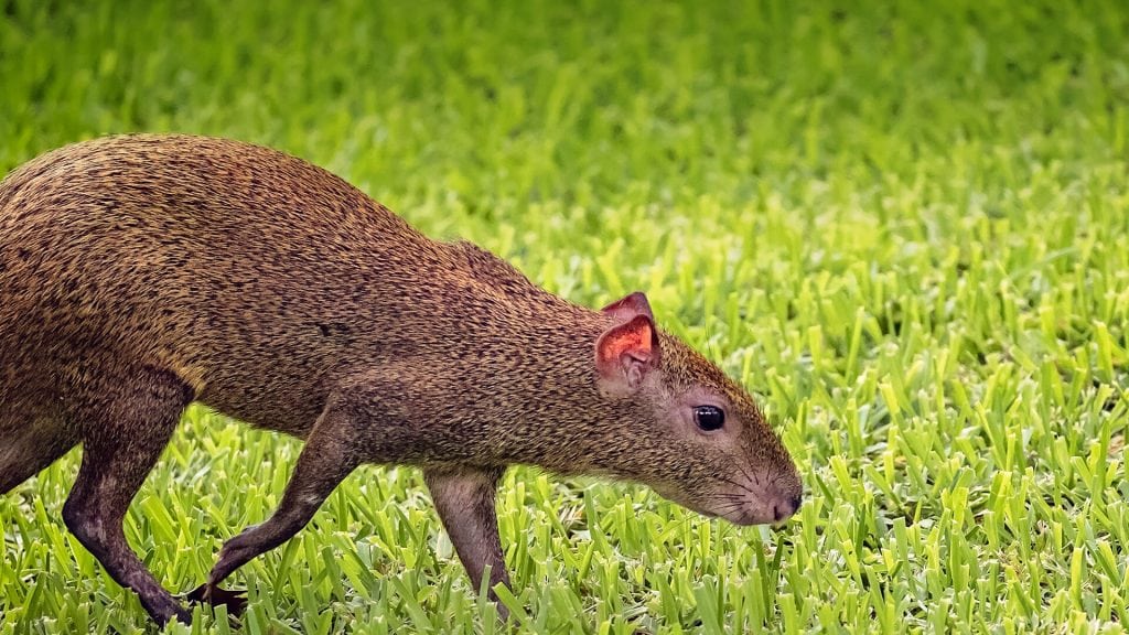 The agouti is a rodent from Central and South America rain forests that looks a bit like a really large …