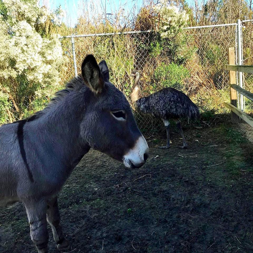 “We realized today the donkey and the emu need to stay together. They are very bonded. The vet will be out soon to check him, held and do vaccines. Any donations toward their care are appreciated.”