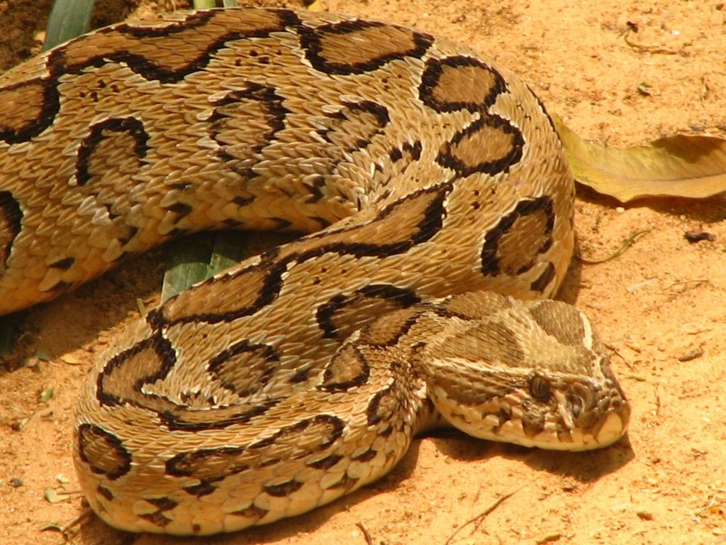 Russell’s Viper is one of the deadliest snakes in the world and coupled with their smaller relative, the Saw-Scaled Viper, account for more snake bite deaths than all other species put together. The Russell’s Viper will transfer a large amount of venom into a single bite.