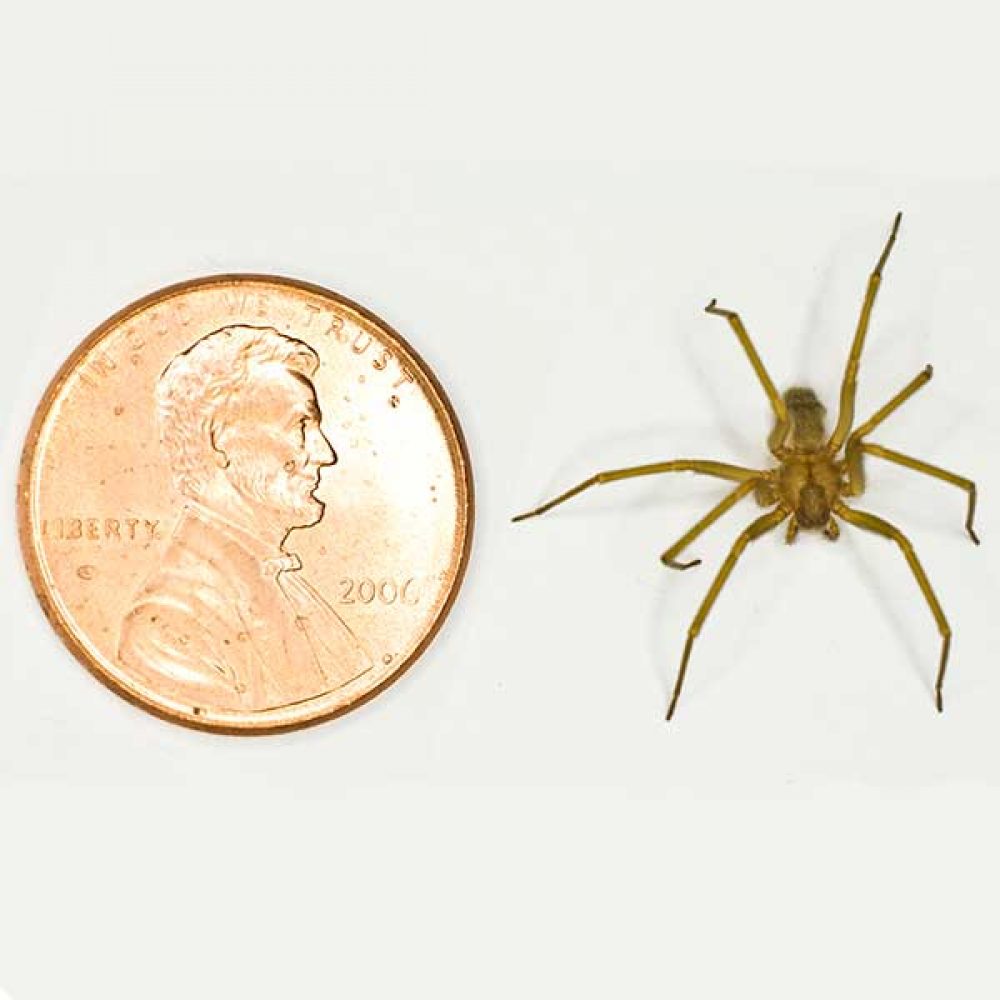 Adult Brown Recluse Spiders have a leg span of about 24 millimetres. Their body is around 3 – 8 millimetres long and about 3 – 16 millimetres wide. Males are slightly smaller in body length than females, however, males have proportionally longer legs.
