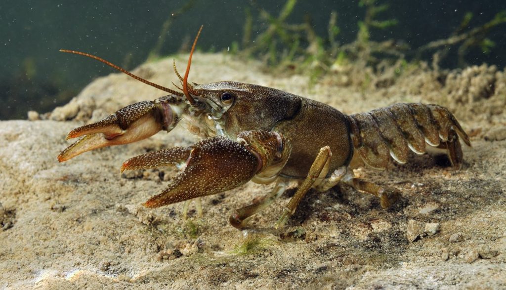 It is the only species of crayfish found in Ireland, occurring over limestone areas inhabiting rivers, streams, canals and lakes. White-clawed Crayfish are absent from the more acidic waters of the west. They occur in streams with a moderate flow alongside other freshwater invertebrates such as caddis fly, mayfly and mollusc species.