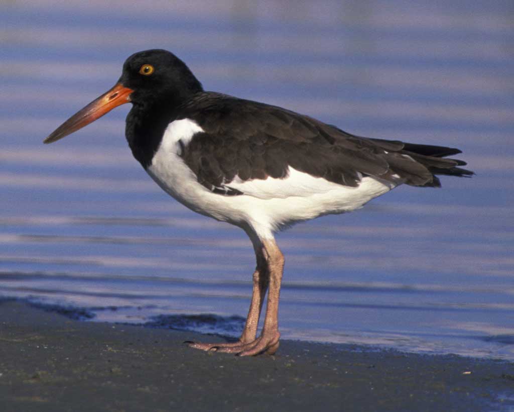 The American Oystercatcher (Haematopus palliatus) is a common sight on rocky and sandy beaches and saltwater lagoons on Galapagos. It has a bright red bill which it uses as an oyster shell opener. It has black and white plumage, the top part of its body and its wings are black, the underparts white. Find out more!