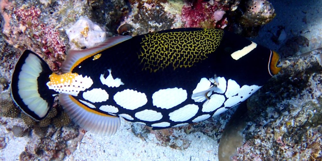 This belongs to the Balistidae family and there are about 40 species is this family. They are marked by spots and lines and they live in the Indo-Pacific. Most are found in relatively shallow, coastal habitats, especially at coral reefs, but a few, such as the aptly named oceanic triggerfish. One of the most beautiful of their species is the clown trigger fish, it’s designs and colors are amazing!