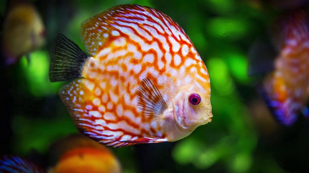 They all have a compressed body shape and the extended finnage is absent, that’s why they have a more rounded shape. It is this body shape from which their common name, “discus” appeared. The sides of the fish are frequently patterned in shades of brown, green, red, and blue.