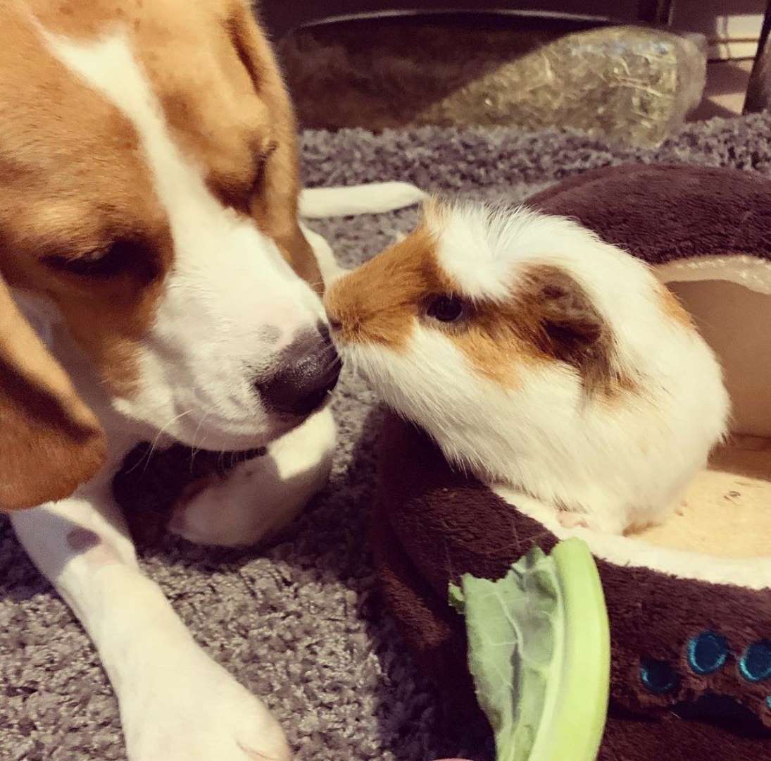 They say that people start to resemble their furry friends, and the same might just be true for members of the animal kingdom, too. Case in point: Hugo, an orange-and-white beagle, has a coat that’s virtually identical to that of his best bud, Wayne, a guinea pig.