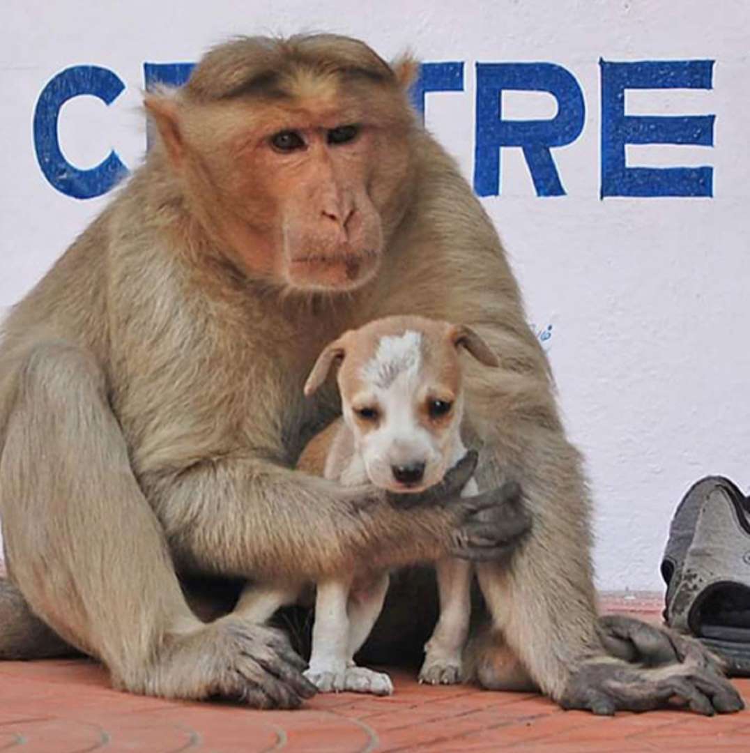 Some animal friendships are so aww-inspiring you can’t help but love them. In this case, a rhesus macaque monkey from India adopted an abandoned puppy and raised it as her own, feeding it, grooming it, and even carrying it as it would one of her own offspring.