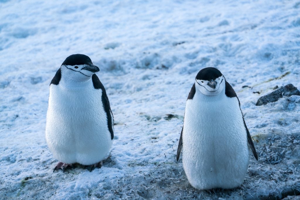 Like most penguins, these use their flippers to ‘fly’ at speeds of up to 20 miles per hour. On land, Chinstraps often ‘toboggan’ on their stomachs, propelling themselves by their feet and flippers. Chinstrap Penguins climb out of the water and up steep slopes using all four limbs and they are able to jump large distances to reach footholds.
