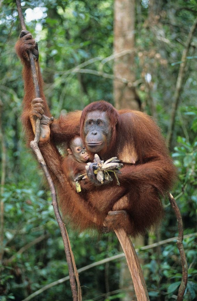In fact, orangutans look a bit awkward on the ground, using their arms as we might use a pair of crutches or lifting those arms high above their head when they walk.