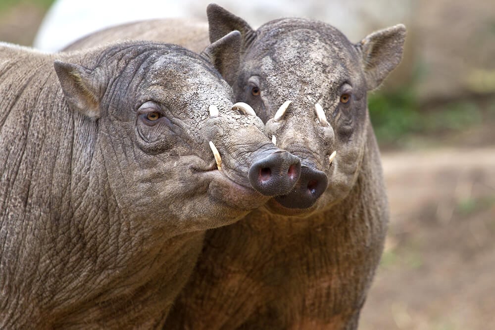 The babirusa has been called “a wild pig with a dental problem.” They have remarkable tusks or canine teeth that can grow right up through the skin in their snout and curve back toward their forehead. The word babirusa means “pig deer” in Malagasy, as their wild-growing tusks are reminiscent of deer antlers. Find out more!