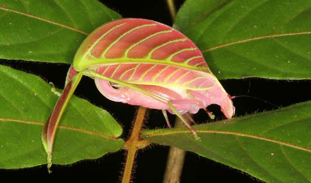 Eulophophyllum kirki – The Eulophophyllum Kirki are katydids that were discovered when researchers were searching for tarantulas and snakes in Borneo, Malaysia. What makes them unique is that the females sport a distinctly rosy color which makes them stand out while the males are uniform green colors.