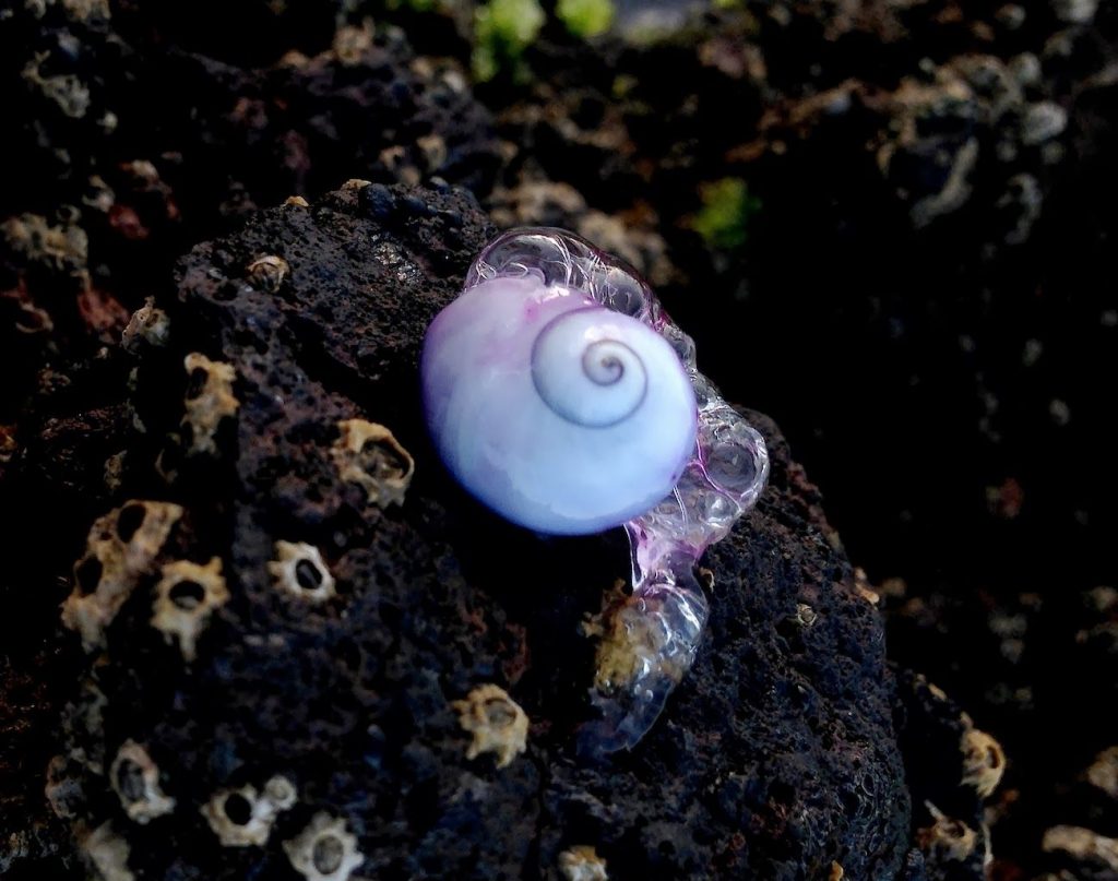 Beyond worrying about keeping its bubble-raft intact, life isn’t care-free for the violet sea snail, which is food for a wide range of predators including birds, sea turtles, fish and other mollusks.