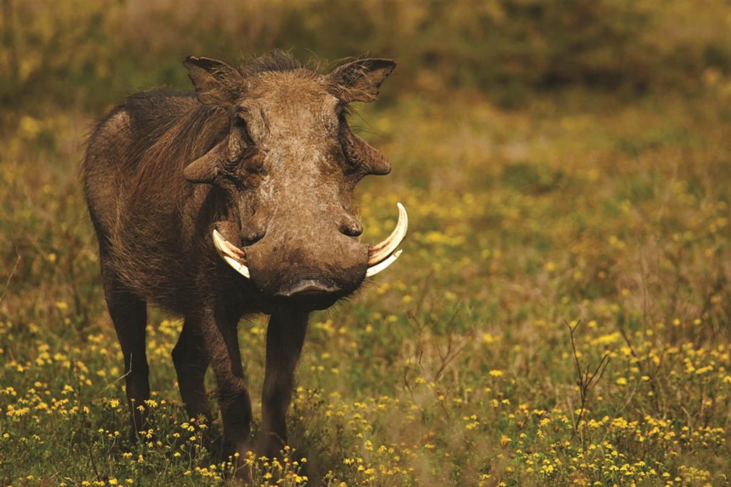 Warthogs often kneel down on their front legs and use their muscular snout to dig up dinner. They even shuffle along in the kneeling position if there are plenty of tasty things in the area.