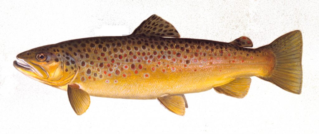 It can be found all over the British Isles in lakes or rivers – where the water is clean and well aerated (circulation of air). The Brown Trout feeds on insects and larvae, shellfish, worms and small fish.