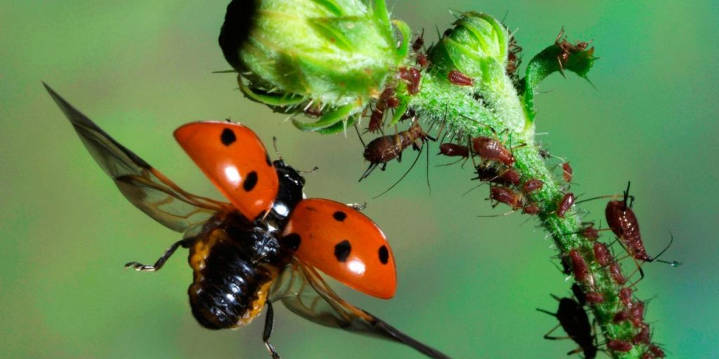 Some species of ladybird are herbivorous and feed only on mildews and microscopic plant fungi which is helpful because it can reduce the onset of certain fungal diseases in plants.