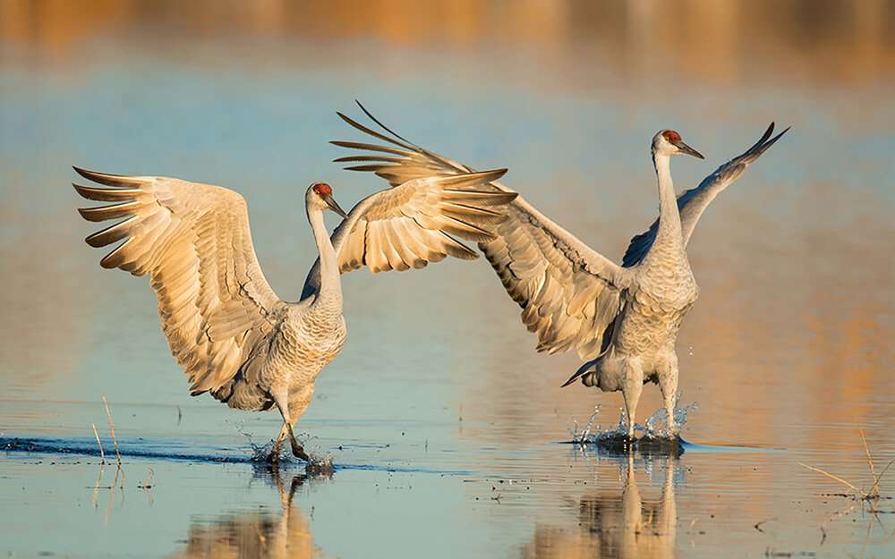 Humans have love songs and poetry, but sandhill cranes have ‘unison calling’ to profess their bond to the world. Female cranes squawk twice and the male cranes respond with a single squawk. We doubt it would have the same effect on humans.