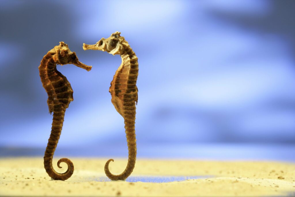 Seahorse courtship begins with a daily “dance,” during which the male and female gracefully swim together. This courtship happens every morning for several days — the final dance can last up to eight hours — until the couple finally does the deed.