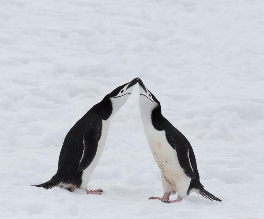 Chinstrap Penguins communicate through ritual behaviours of head and flipper waving, calling, bowing, gesturing and preening. Stares, pointing and charging may occur when territorial disputes arise.