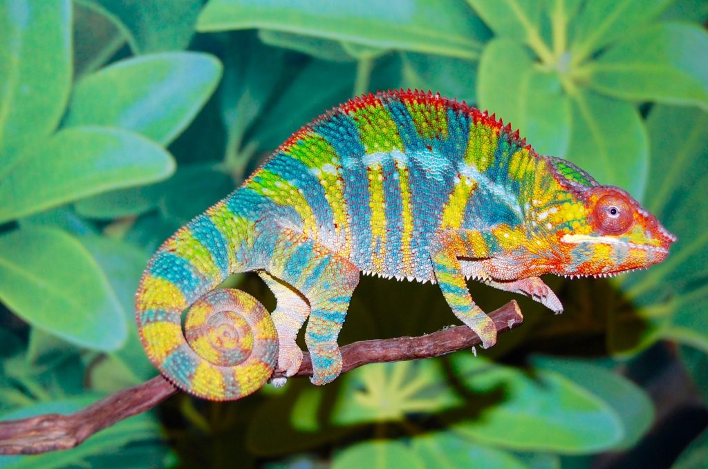 All Chameleons have feet that are like clamps. On their front feet, two toes are fused on the outside and three on the inside, on the back feet three are fused on the outside and two on the inside. This is called a “zygodactyl” pattern which allows the chameleon to grip onto branches and stems really easily. Find out more!