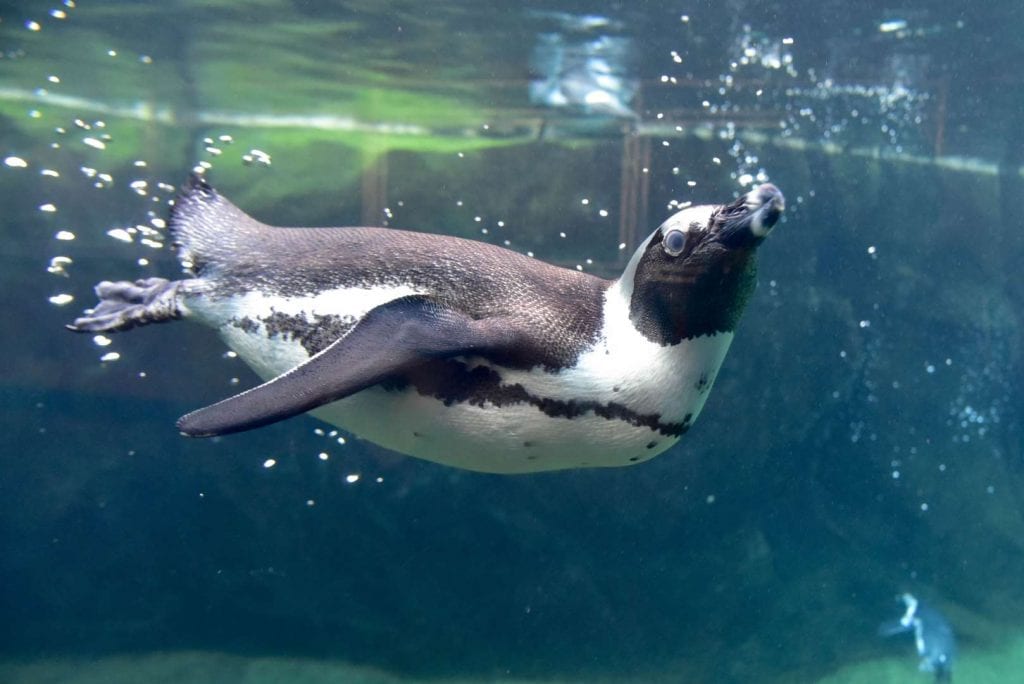 Unlike the penguins in Antarctica fending off frigid temps, the African penguin battles heat on the toasty African coastlines. It’s not uncommon to see the penguins sticking out their white chests to minimize the heat absorption when they’re stuck on the shore incubating eggs or tending to newborn chicks.