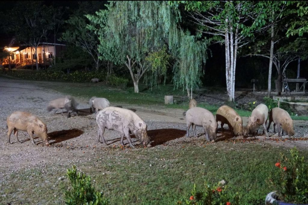The visitors would come to harvest birds’ nests for birds’ nest soup. While they were here, their pigs either roamed or escaped,’ Thomas shares. ‘Over time, they have come to be a unique subspecies and live wild today.’ They live in groups and have a pack order much like that of dogs. They aren’t aggressive but they are pretty strong for their size.