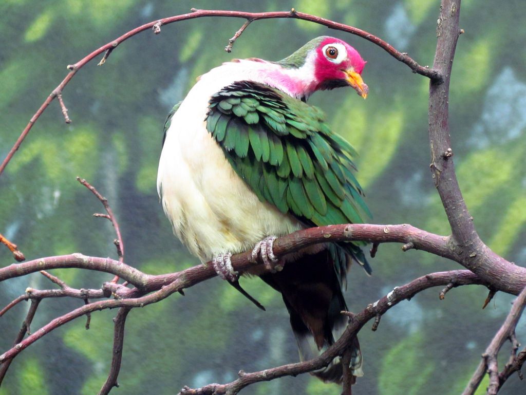 This bird eats fruit directly from the tree, or from the ground if items have been dropped by hornbills or monkeys. Like other doves and unlike most birds, the Jambu Fruit Dove can put its entire bill into the water and drink by sucking it in.