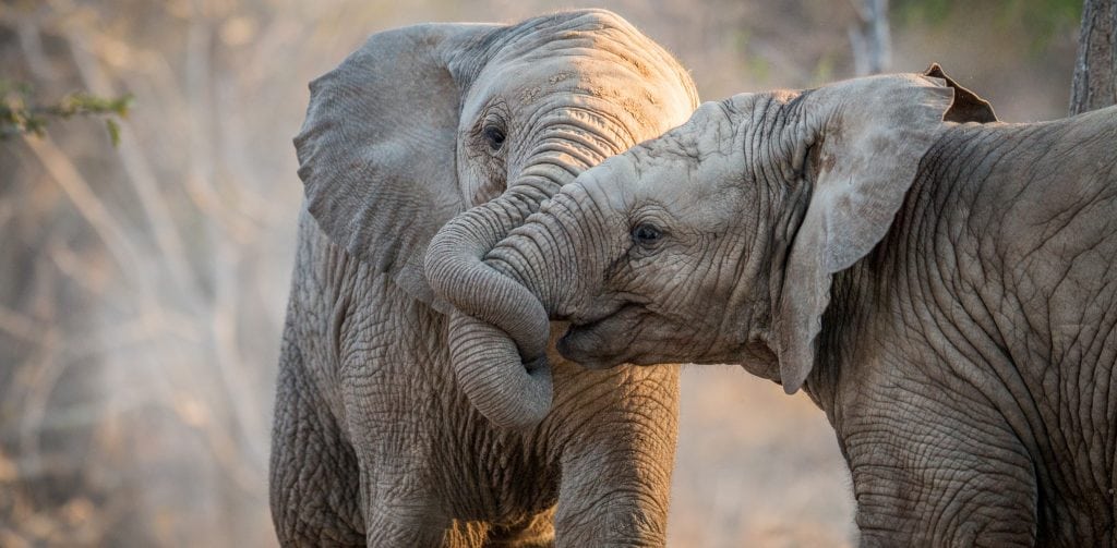 Although we can’t know exactly what elephants feel and how they process death, they seem to show signs that they experience grief when a member of their family (or another elephant) dies. When they see a dead elephant, they may vocalize, use their trunks to “hug” the dead animal, or stay with the carcass for hours. Some elephants have also tried to bury the dead body by covering it in leaves and soil.