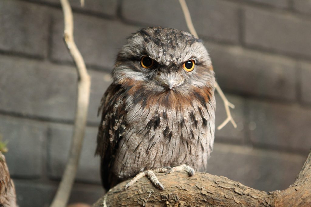 The tawny frogmouth is a carnivorous species. They feed upon nocturnal insects, worms, slugs and snails. The majority of their food is acquired by sitting still and waiting for insects to fly into their open mouth. They are attracted to the beak as the inside is yellow.