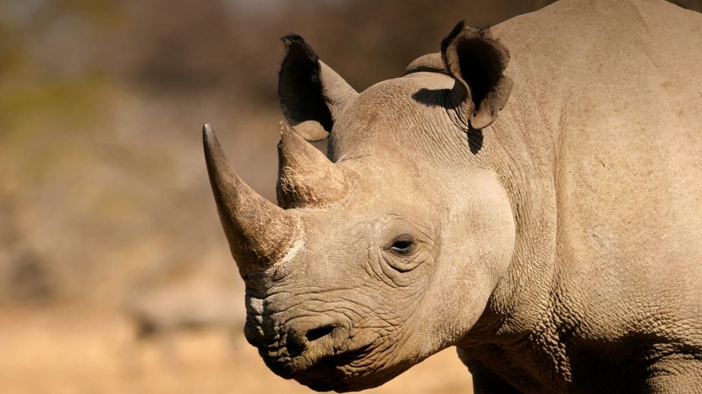 Dining all day: All rhinos are herbivores, spending the majority of the morning, late afternoon, and nighttime eating grasses or leaves, depending on the species. During the hottest part of the day, they rest. Their horns are used to dig up roots and break branches for better access to food.