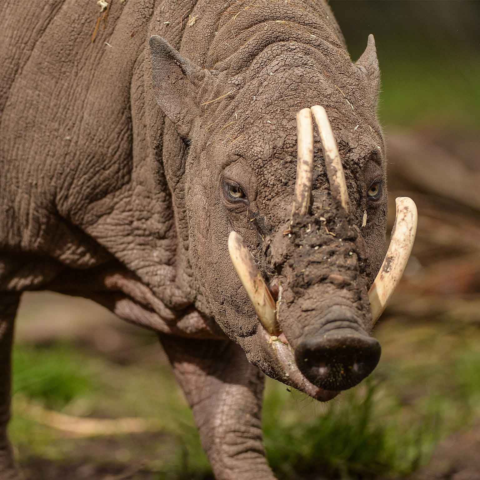 The babirusa has been called “a wild pig with a dental problem.” They have remarkable tusks or canine teeth that can grow right up through the skin in their snout and curve back toward their forehead. The word babirusa means “pig deer” in Malagasy, as their wild-growing tusks are reminiscent of deer antlers. Find out more!