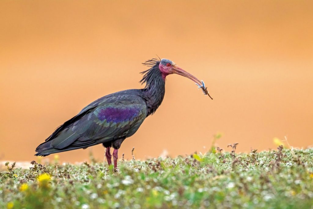 The parents take turns feeding their chicks; the chicks stick their head into a parent’s mouth to get regurgitated food. Ibis chicks fledge from 28 to 56 days, depending on the species, but are not fully independent until 1 to 4 weeks after fledging. And some, like the northern bald ibis, stay with their parents for much longer to learn feeding and migration patterns.