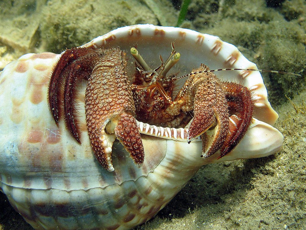 Their link with the sea is never entirely broken, however, as hermit crabs carry a small amount of water in their shells at all times to keep their abdomen moist and their modified gills hydrated.