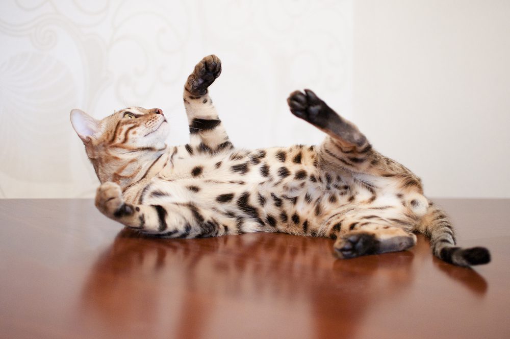 According to IHeartCats.com, “Like most animals, cats do not show their stomachs to just anyone. If your cat rolls over on its back to give you a flash of that fuzzy belly, this is an indication that they feel comfortable around you. Not only this, but they feel loved and protected by you, rendering themselves defenseless while on their backs.”