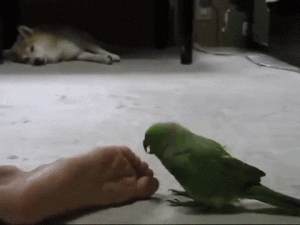 If only it were always this easy to guess what parrots are saying… The thing is that a bird bobbing its head (especially when it comes to smart birds, such as parrots) can have a lot of meanings. One of them, for instance, is hunger!