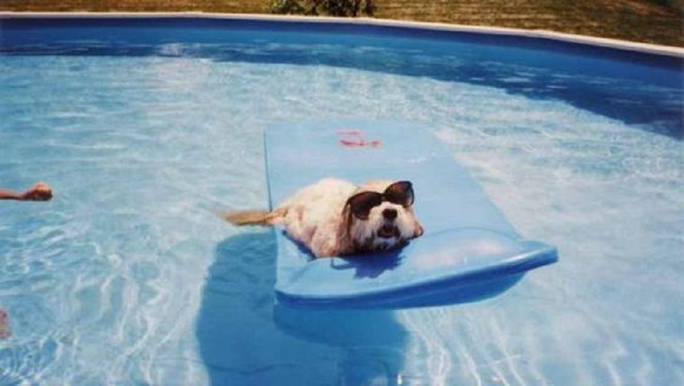 Isn’t it the perfect song for a beautiful and lazy day? What’s better than a relaxing day at the pool when the weather is hot and humid? We don’t know about you, but we would love to sit right next to this cute dog and let the warm rays of the sun play with us.