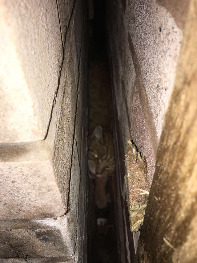 Janine Dawson was walking on the streets in Manchester, England, and she heard a strange sound that caught her attention. This frantic sound signaled that someone needed help. Then she discovered a little cat trapped between two buildings.