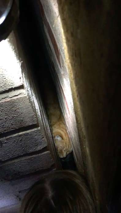 The RSPCA sent animal collection officer Emma Pollard and inspector Nichola Waterworth out to the neighborhood to asses the situation. They were shocked when they saw the cat’s situation. Simba was more and more scared. The rescuers also worried they did not have all the necessary measures to save it. “The poor cat was well and truly stuck in the gap and was crying very loudly,” Pollard said in a press release. “At one point, I feared we wouldn’t be able to free him.”