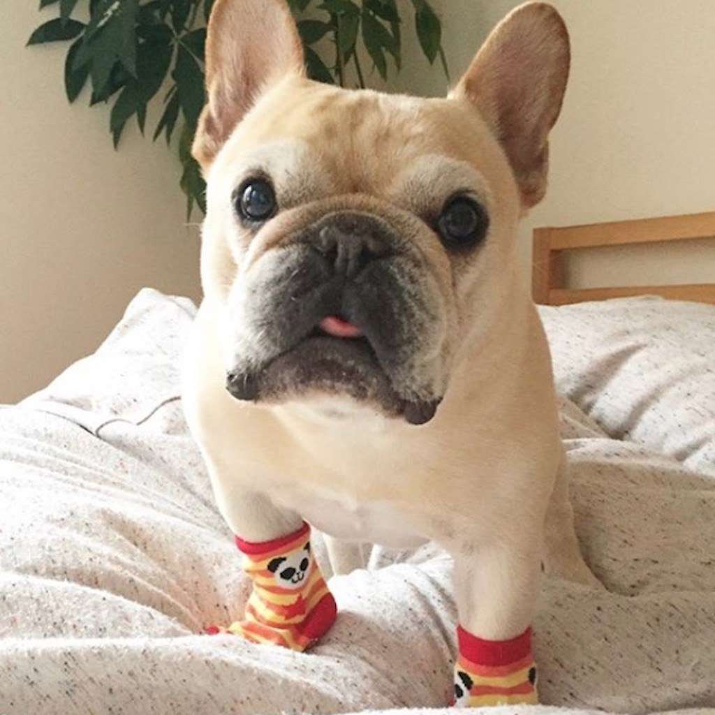 It loves romping around New York City—but when it gets cold, his owners make sure that his little paws are protected with little socks.