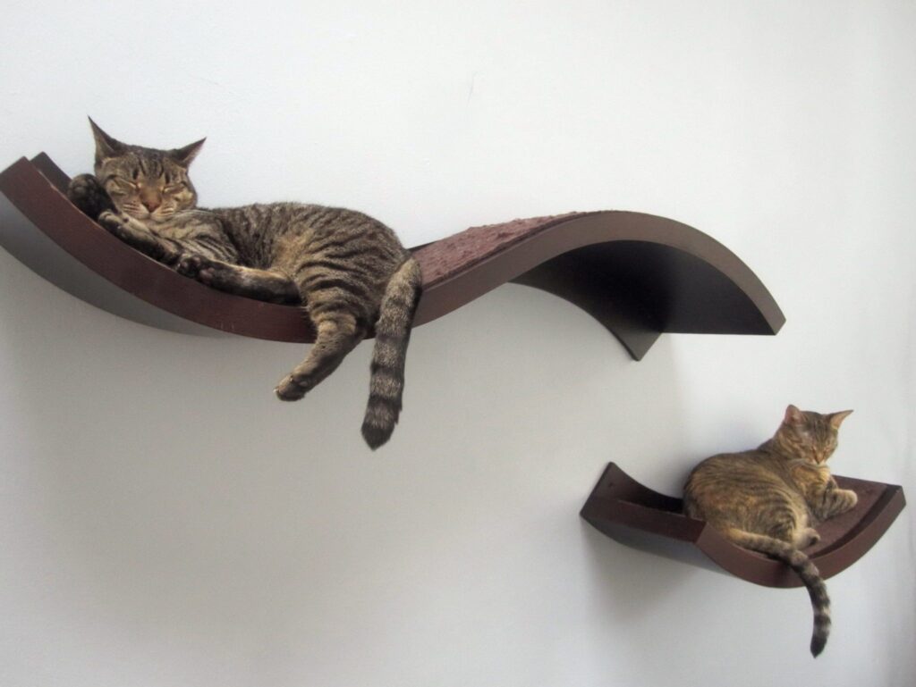 Climbing trees might be out, but that doesn’t have to mean all climbing is outlawed. Install floating shelves to give your cats a place to climb without having to find a place in your decor for giant cat towers.