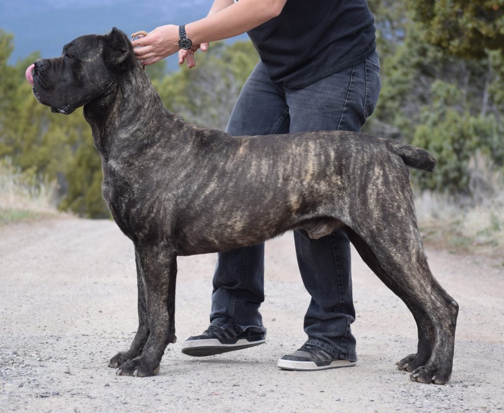 This breed also has a muscular look and can weigh between 99 to 150 pounds. Cane Corso is a descendant of the Canis Pugnax and those were dogs used by the Romans in warfare.