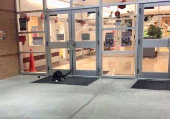But when Schaffer got to work the next morning, the dog was there again, waiting in front of the school doors. He seemed to instantly recognize Schaffer.
