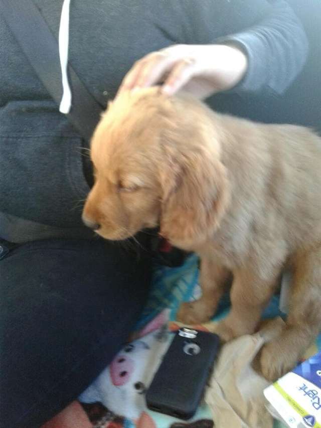 They immediately ripped open the box, and found a scared, weak golden retriever puppy inside.
