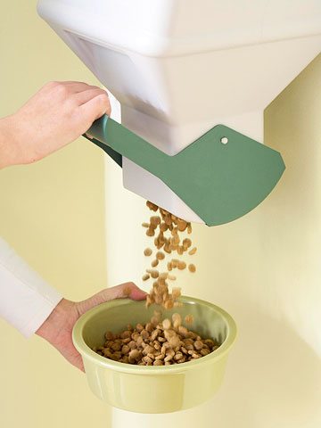 This airtight food bin holds chow at a convenient height for dispensing it at dinnertime.