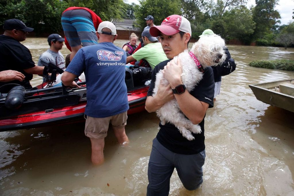 A man rescues a dog during Hurricane Harvey in Texas, USA.