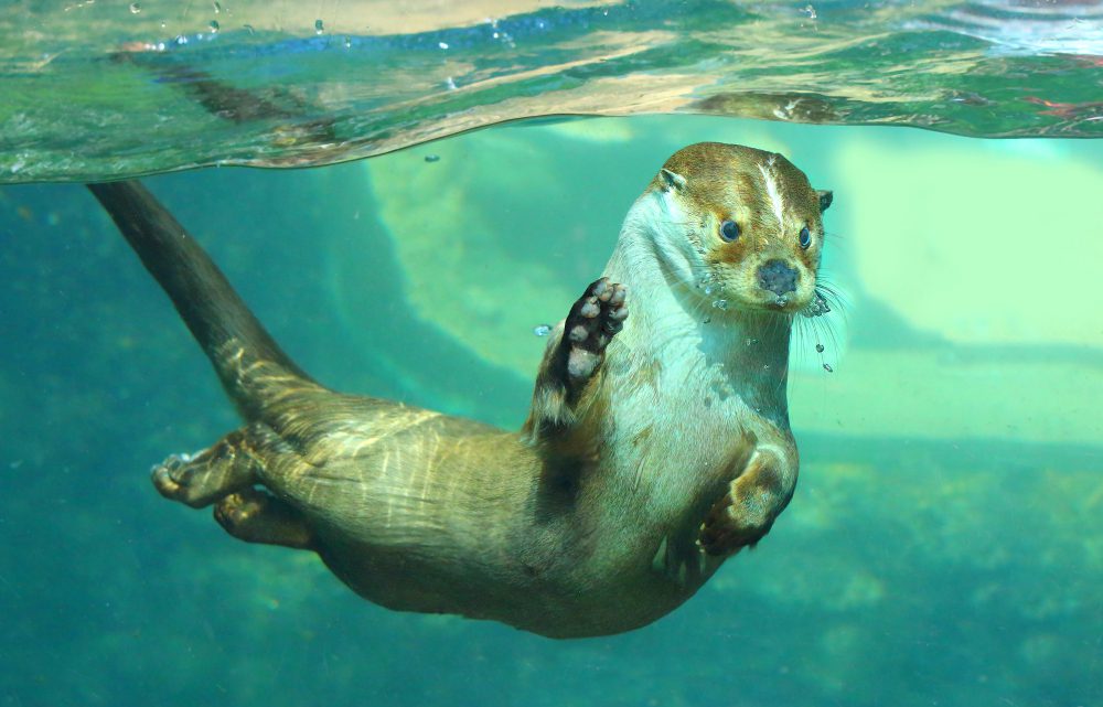 At the Belgium zoo Pairi Daiza, a group of otters started bonding with a couple of orangutans and their 3 year old son.